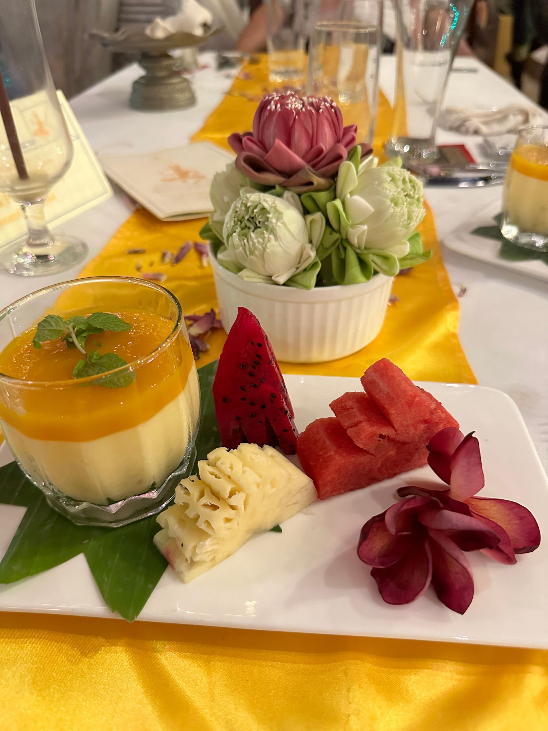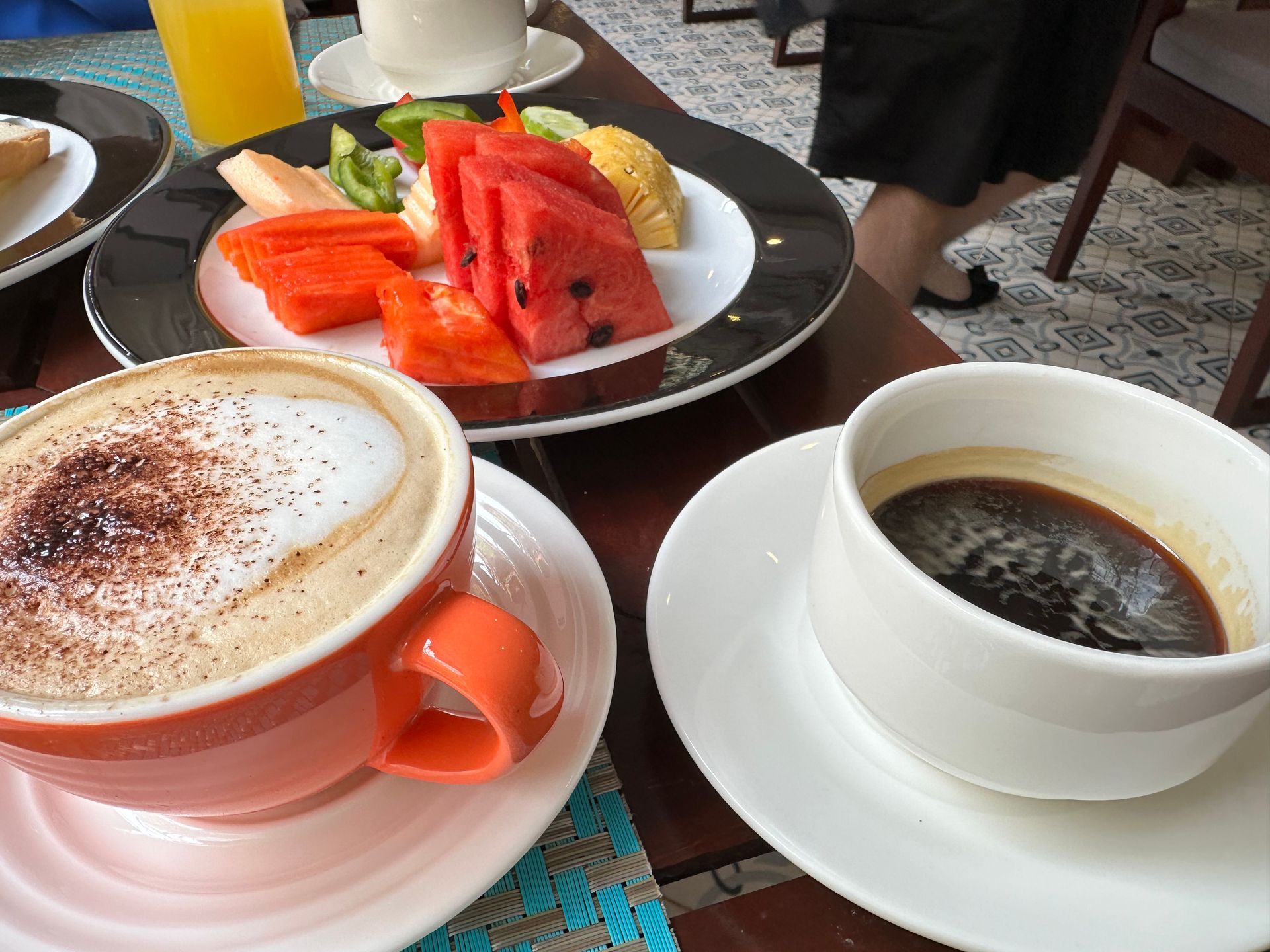 從暹粒機場到渡假酒店一下車就被三四位服務人員大大的微笑迎接,用木盤遞上冰毛巾與冰開水,招呼到充滿香氣的大廳坐下,一位笑容可掬的服務人員遞上迎賓特調:椰奶熱帶水果冰沙+辣炒花生米,check in過程完全不用站起來,她們溫柔蹲在你座位旁仔細紀錄,被詢問名字以為只是個禮貌,後來才發現入住的五天四夜裡,只要遇到他們都會直接叫我們名字,打招呼、關心寒暄需不需要幫忙叫車、今天想去哪、過的都好嗎?不是只有一位櫃檯人員這麼做,是連餐廳廚師都會在早餐時間出來一桌一桌關心,真的有被這用心給感動到。